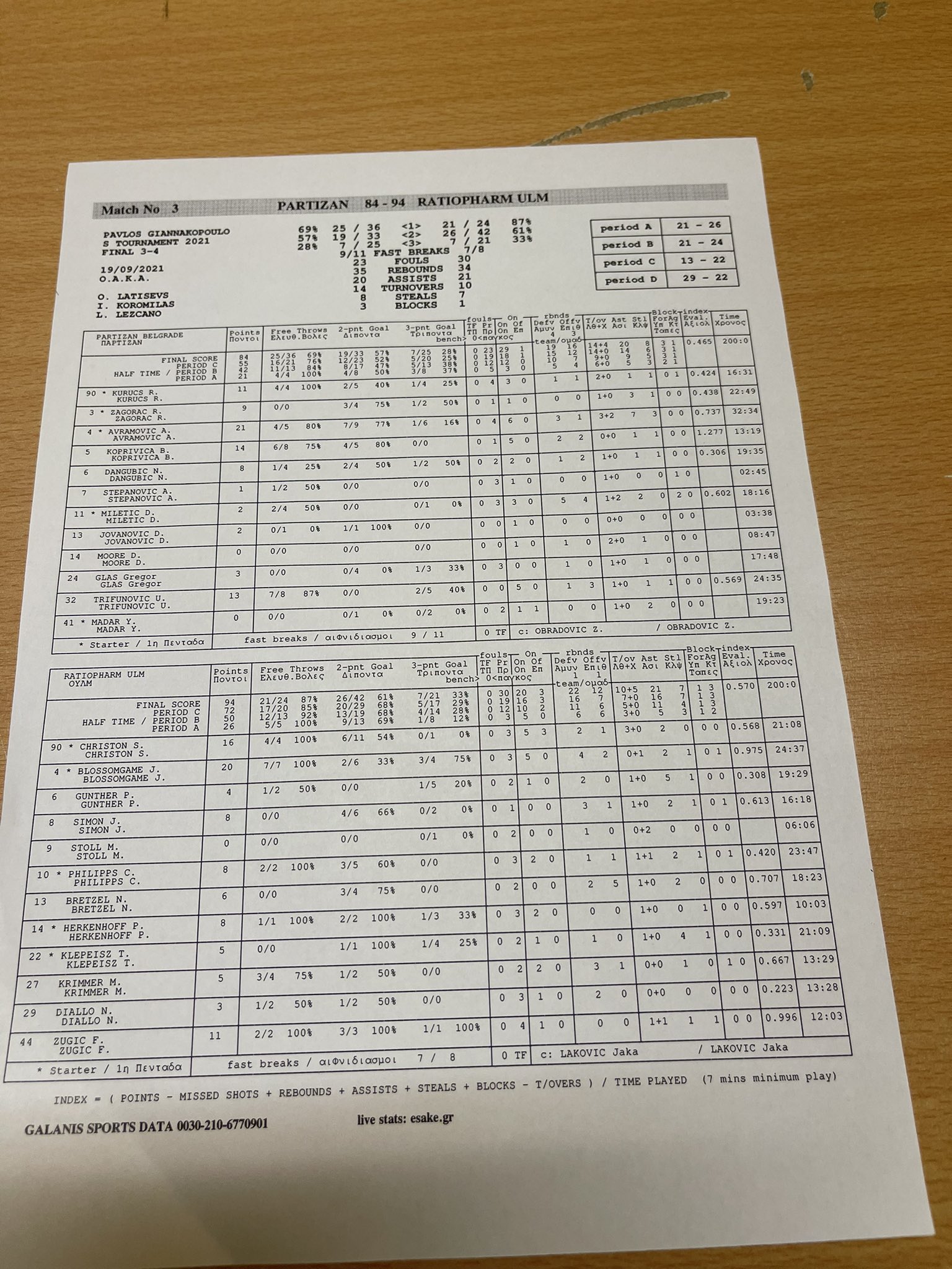 ratiopharm ulm![]() | 18.8.2021 22.8.2021 27.8.2021 2.9.2021 5.9.2021 8.9.2021 12.9.2021 18.9.2021 19.9.2021 | Trainingsauftakt 104:52 gegen Tigers Tübingen 96:71 gegen MHP RIESEN Ludwigsburg 83:93 gegen medi bayreuth 78:70 bei HAKRO Merlins Crailsheim 89:98 bei Brose Bamberg 77:69 gegen s.Oliver Würzburg 69:88 gegen Anadolu Efes Istanbul (in Athen) 94:84 gegen Partizan Belgrad (in Athen) | – Recap Recap Stats | Recap Recap Recap Recap | Re-Live Stats Stats | Re-Live |